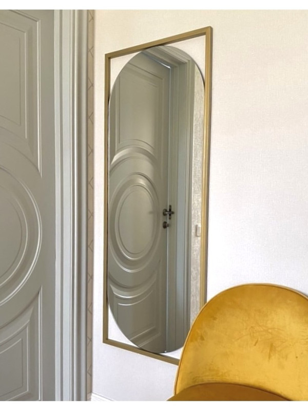 Дизайнерское настенное напольное зеркало Glass Memory Lustrous в металлической раме золотого цвета в Шахты